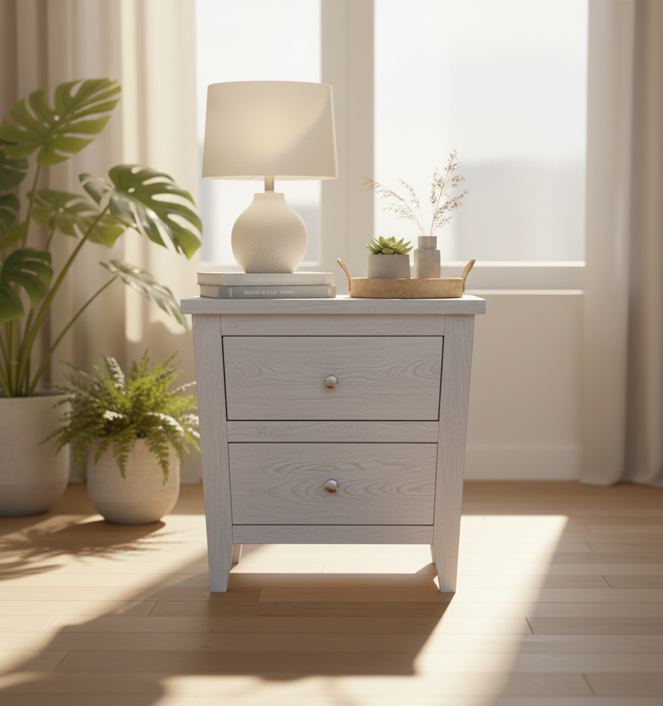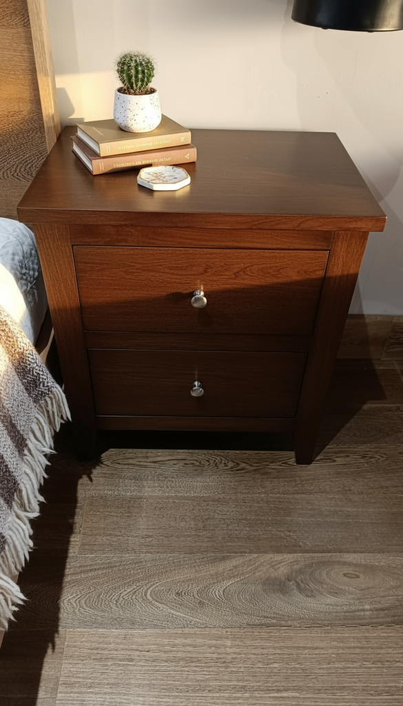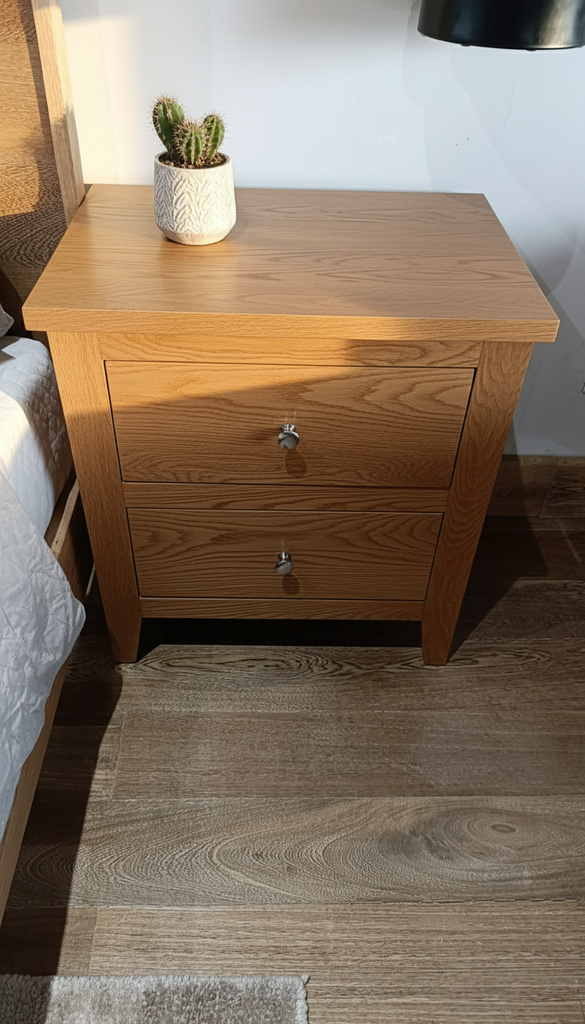 Mesitas de noche Rustica de dos gavetas encaja a la perfección en cualquier dormitorio: infantil, juvenil, de invitados, etc. Perfecta para todas las ocasiones en las que necesites un espacio extra. Además, gracias a su resistente y robusta estructura podrás guardar todo tipo de objetos personales en su interior sin importar el peso.