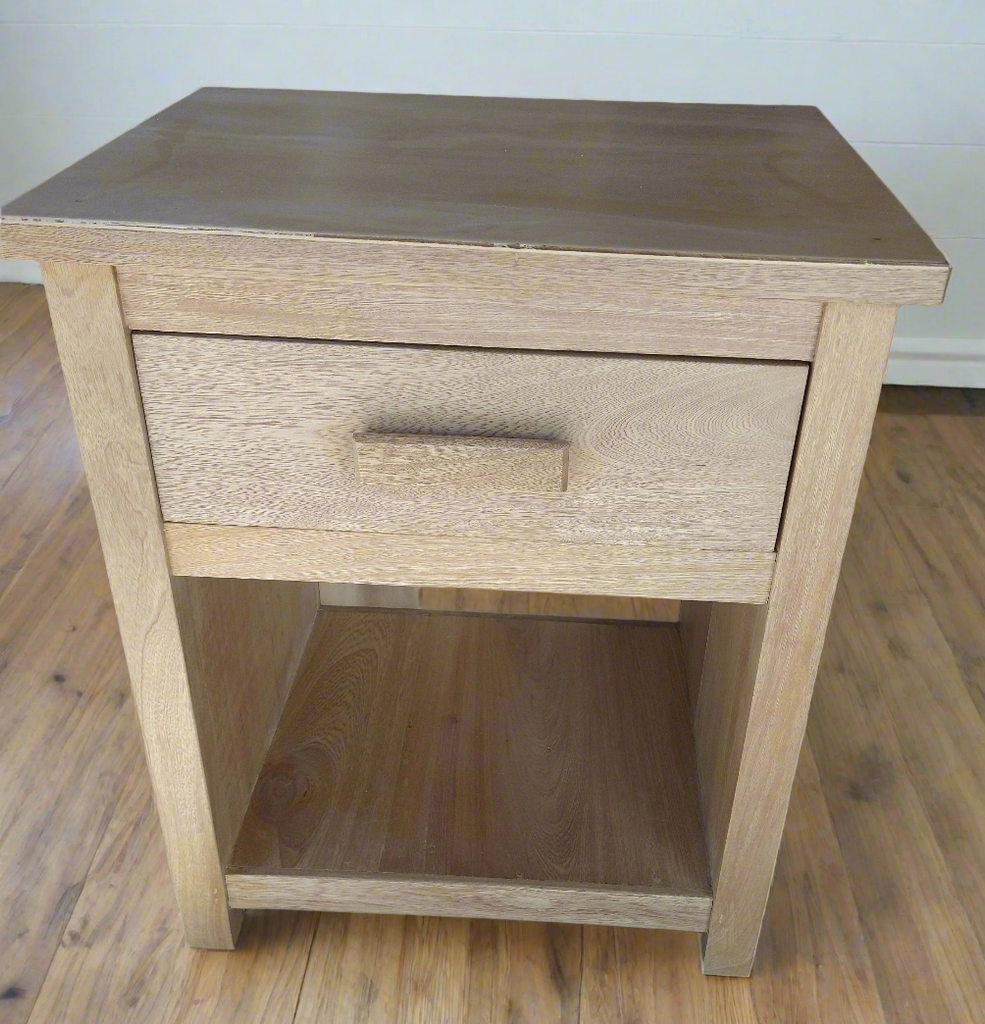 Mesita de noche de una sola gaveta con amplio espacio inferior.