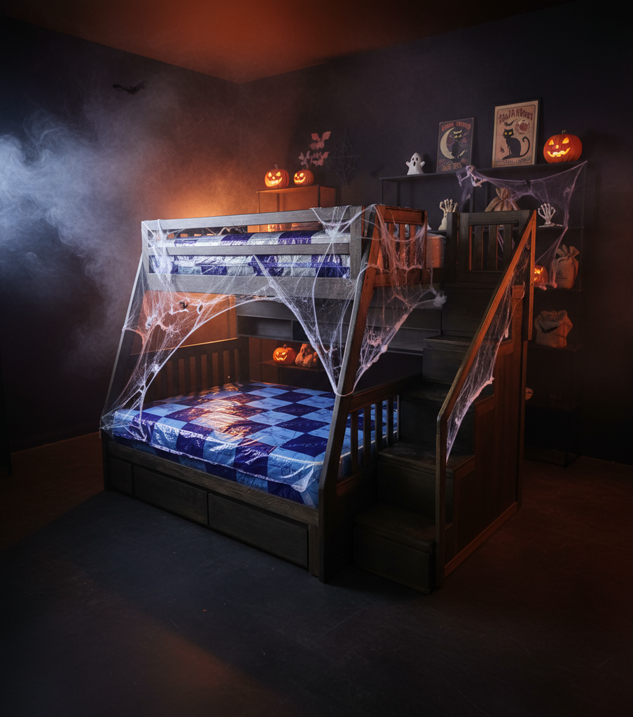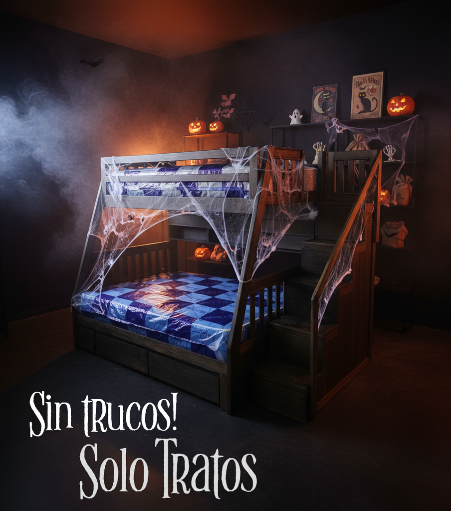 Camarote Luna en tamaño Twin / Full, cuenta con escalones con gaveteros para espacio extra. Ademas de tener fortaleza. Adiciona gaveteros auxiliares o cama auxiliar a tu conveniencia.